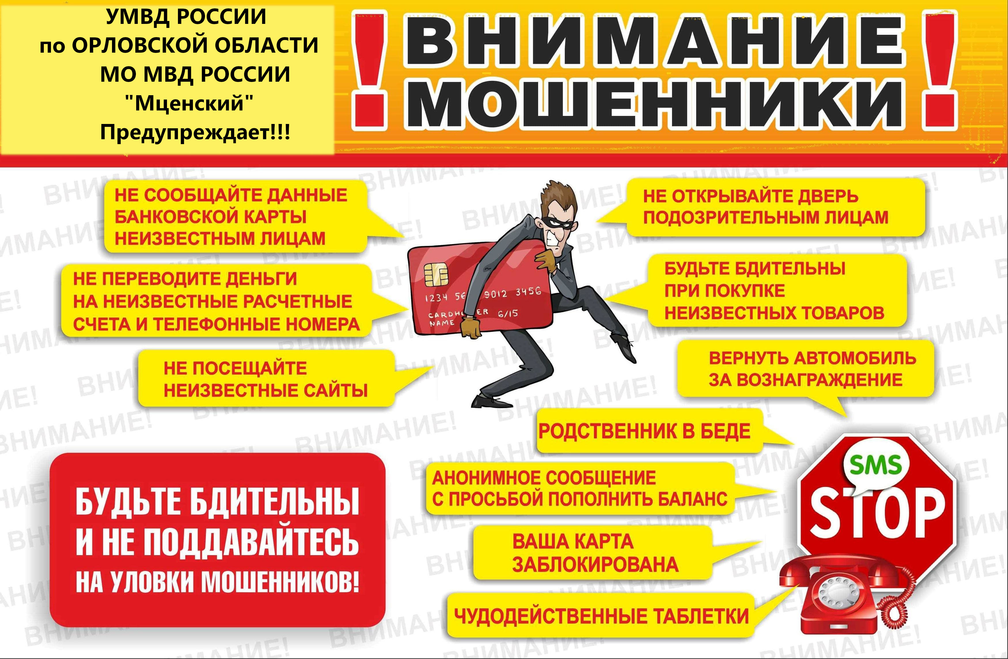 - Убеждайтесь в достоверности информации, полученной по телефону от неизвестных. Перезванивайте родственникам и знакомым - лучше прослыть излишне подозрительным, чем быть обманутым.Не торопитесь предпринимать действия по инструкциям неизвестных людей, полученных посредством телефонного звонка, CMC или ММС, якобы, от сотрудников банка, в особенности, если они требуют произвести манипуляции с банковской картой. Не говорите незнакомцам свои ФИО, реквизиты паспорта и другие личные данные. Не оправляйте пустые CMC, либо с набором цифр, которые Вам продиктовали, это может быть служебная команда Интернет-банка на перевод денежных средств с Вашей карты. Внимание звонок «из банка»Один из широко известных приемов телефонных мошенников-звонок на мобильный телефон якобы из службы безопасности банка с сообщением о проблеме, сбое или попытке незаконного списания денег с Вашей карты. Обращаем внимание, что при звонке клиенту сотрудник банка никогда не просит конфиденциальные сведения; полные реквизиты карты (номер карты, ПИН или CVV-код), CMC-пароли банка, логин и пароль для входа в онлайн-банк, контрольную информацию (кодовое слово); никогда не требует совершать каких-либо операций с картой, в том числе брать кредит и деньги перечислять на номера мобильных телефонов, и счета банковских карт. И самое главное: при любых сомнениях, подозрениях или беспокойстве, при малейшей попытке собеседника узнать пароли или коды немедленно завершите разговор. А затем перезвоните по правильному контактному номеру банка, проверив его на сайте банка или на обороте своей карты.Как не стать жертвой мошенничества используя сеть интернет.Злоумышленник, с целью хищения денежных средств, размещает в сети Интернет объявление о продаже какого-либо объекта (телефон, машина, квартира и т.д.) по заниженной цене и отправляет свои контактные данные.